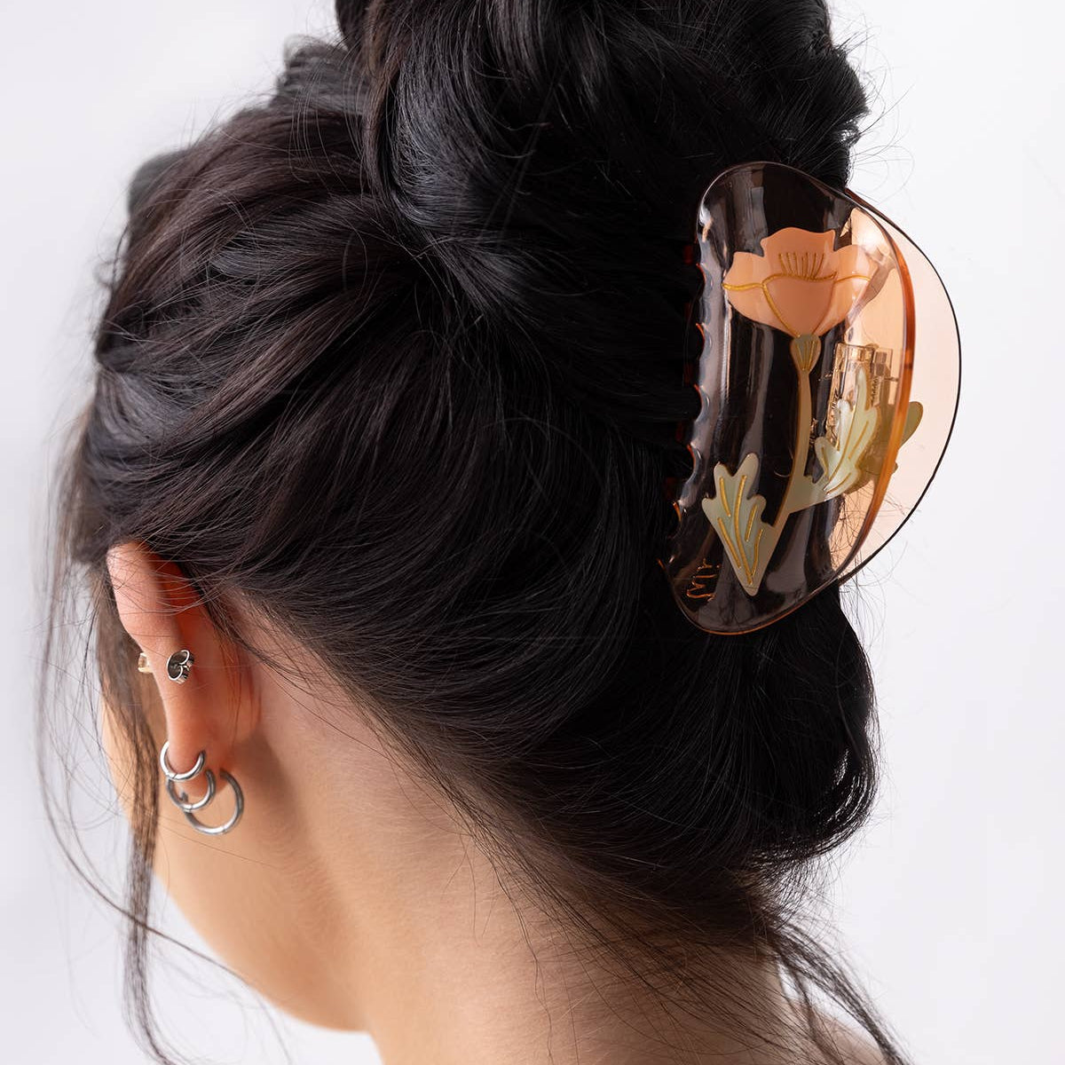 California Poppy Wildflower Hair Claw in Clear Acetate