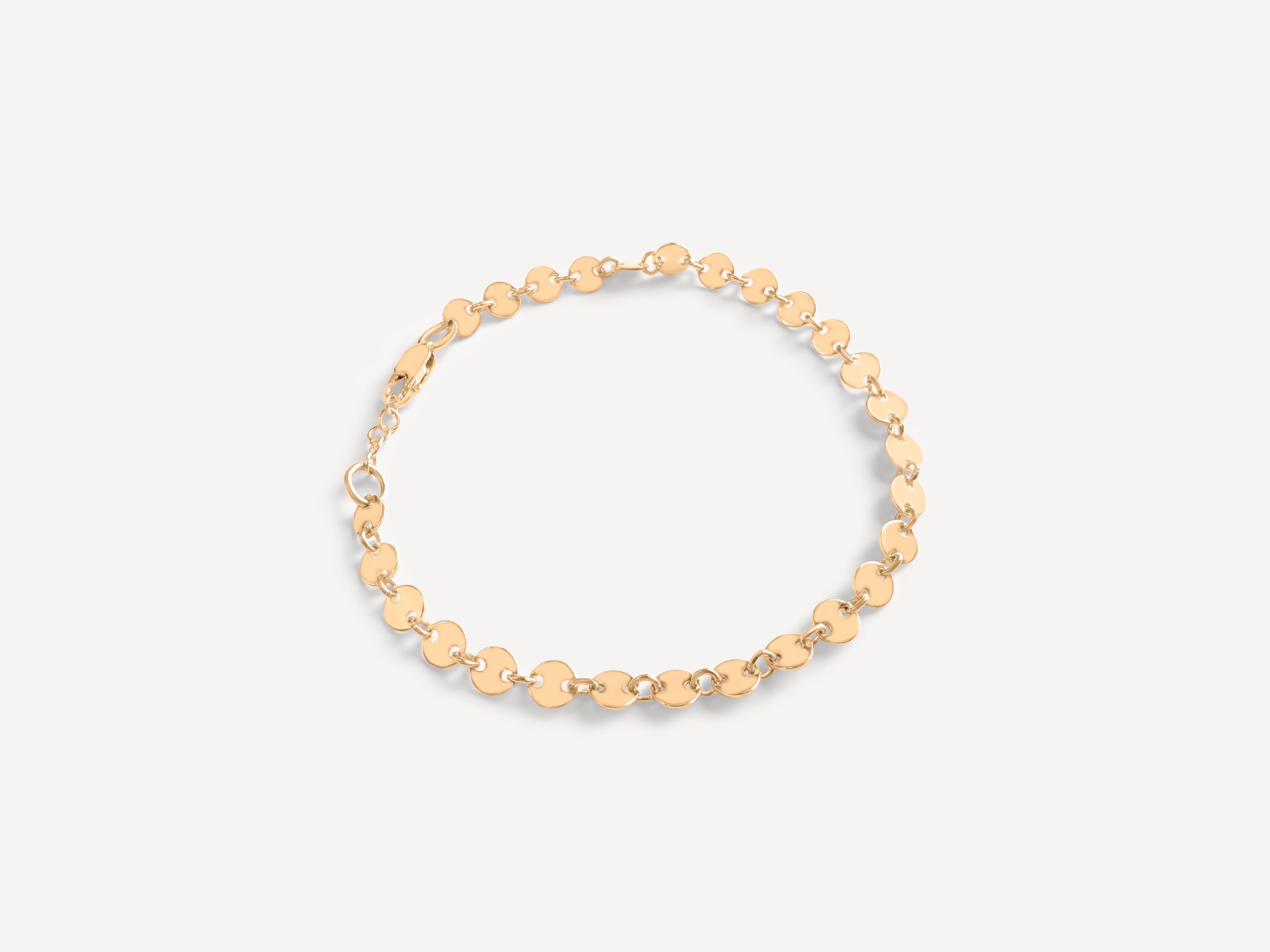 I absolutely love this bracelet! It’s dainty yet sturdy—so well made. The gold-filled discs catch the light beautifully, adding just the right amount of sparkle. It’s elegant and simple, making it perfect for everyday wear or dressing up. I also love how easy it is to stack with other pieces. A timeless addition to my jewelry collection!