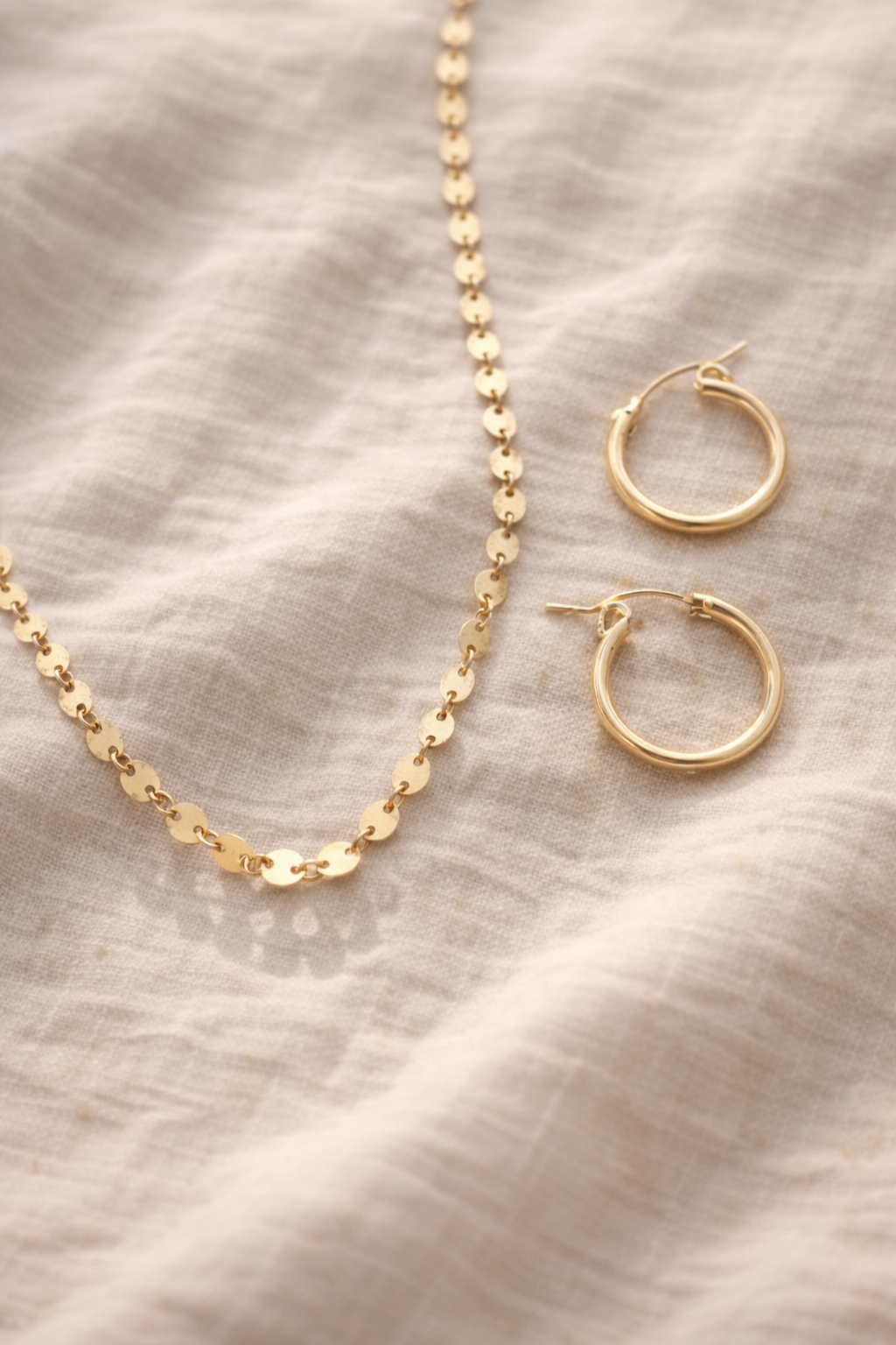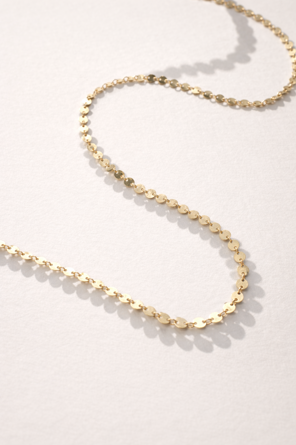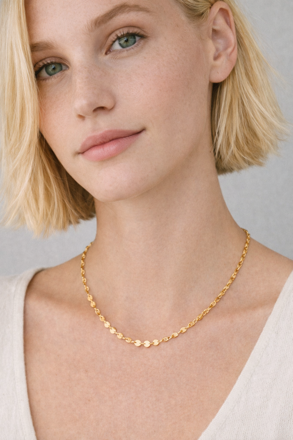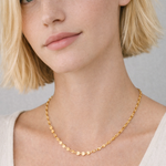The Confetti Necklace is a quiet celebration of light and form. With its delicate, gold-filled discs that softly catch the light, this piece adds a subtle brilliance to your everyday moments. Its versatile design transitions effortlessly from day to evening, whether worn alone for a minimalist statement or layered with your favorite pieces for a curated look. Pair it with the Confetti Bracelet for a harmonious, understated ensemble that feels both thoughtful and timeless—a reflection of your personal style.