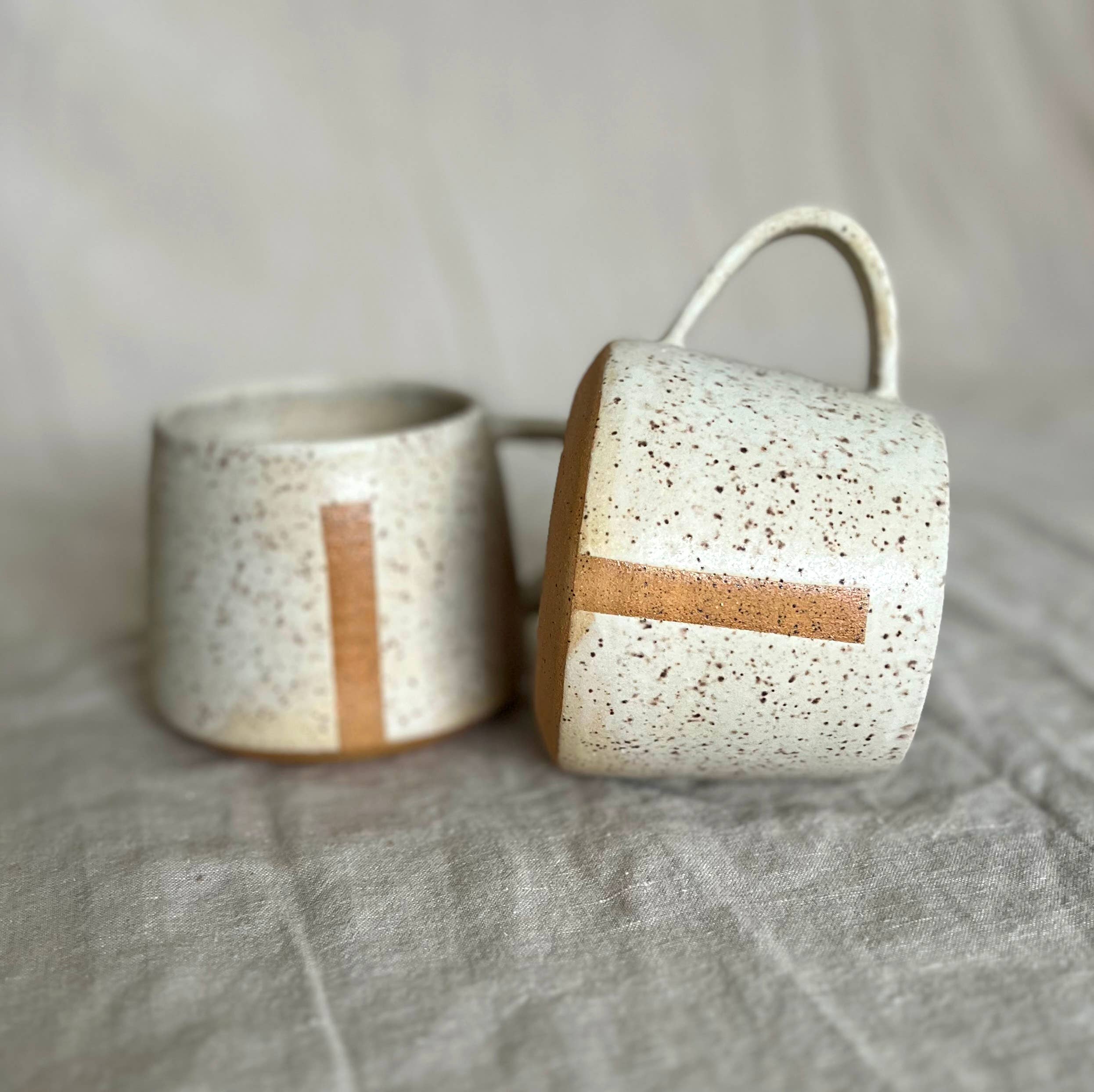 Handcrafted with care, each mug features a smooth semi-matte cream glaze on a naturally speckled clay body, accented with elegant raw clay lines on both sides—a subtle detail that highlights the organic nature of this piece.