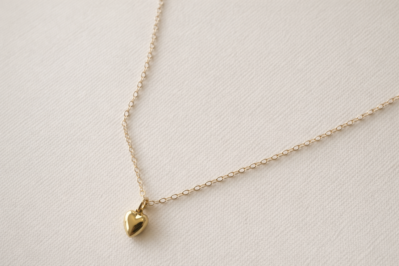 Add a hint of warmth and sophistication to your look with our softly puffed heart pendant necklace. Crafted in gold fill, this timeless piece brings a subtle yet meaningful charm, perfect for layering or wearing solo. Suspended on a fine, delicate chain, the heart pendant is a graceful accent that complements any style effortlessly. Its classic design offers versatility, making it an ideal piece to wear every day or to elevate an evening outfit.