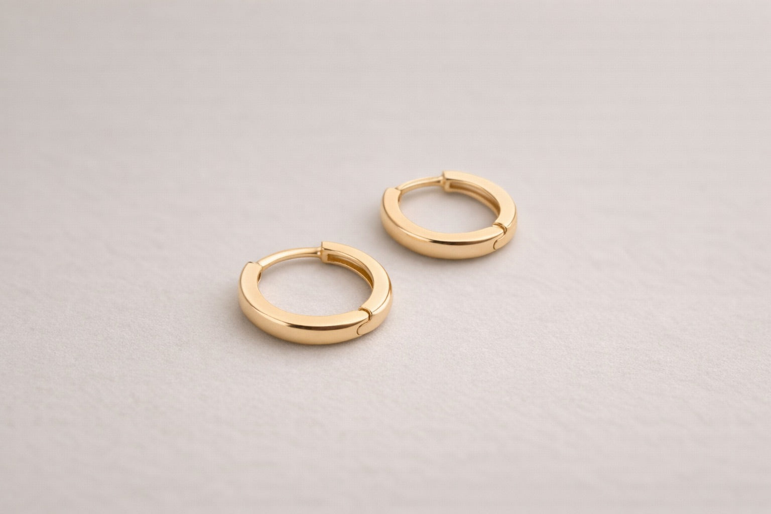 A barely-there essential, these 14k yellow gold huggie hoop earrings offer a clean, minimal profile with a warm glow. Measuring 11.5mm in diameter, they sit close to the lobe for a subtle yet timeless finish. Lightweight and versatile, they’re perfect for everyday wear or layering with other studs and hoops.