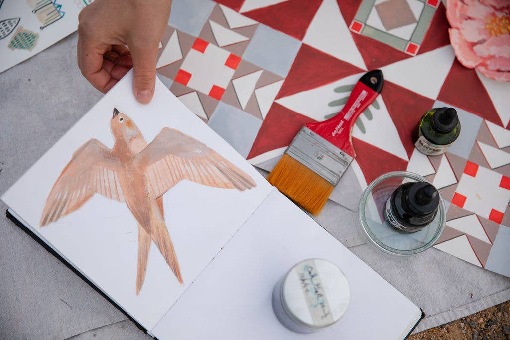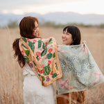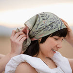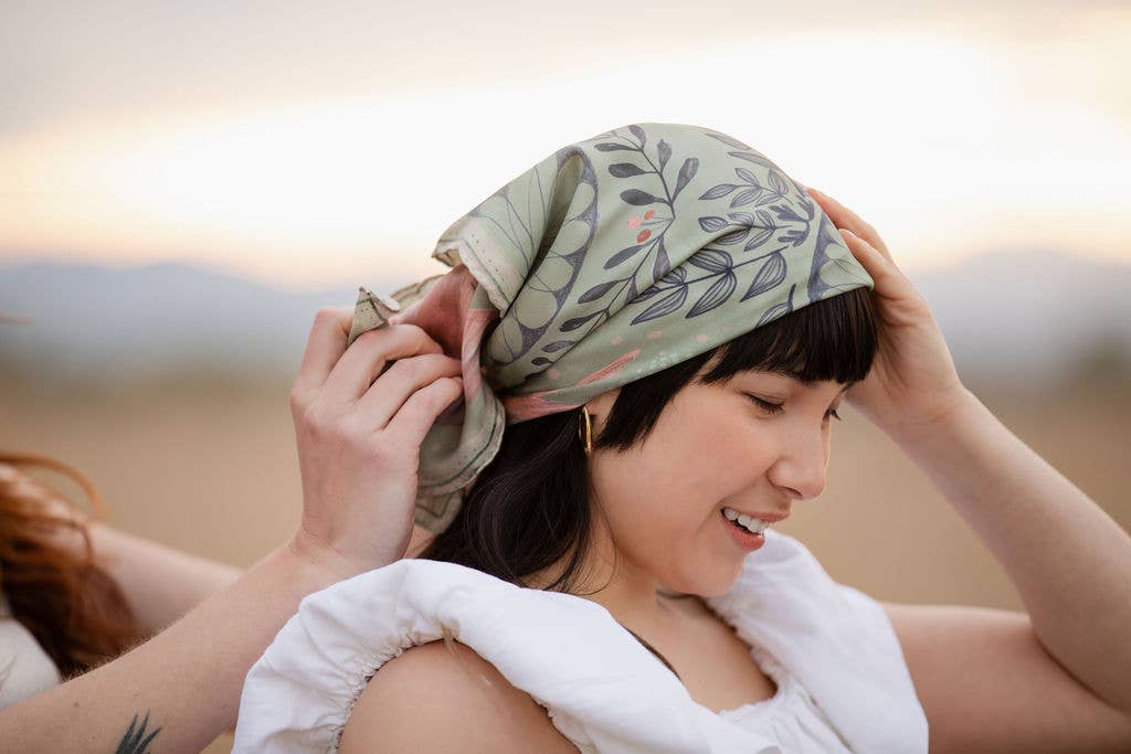 Skylark carries a hand-drawn pattern of delicate florals and birds in flight, set against a soft vintage green ground. The balanced colors create a feeling of calm and timeless style. Wear it as an accent to a minimalist wardrobe or gift it to someone who appreciates refined design.