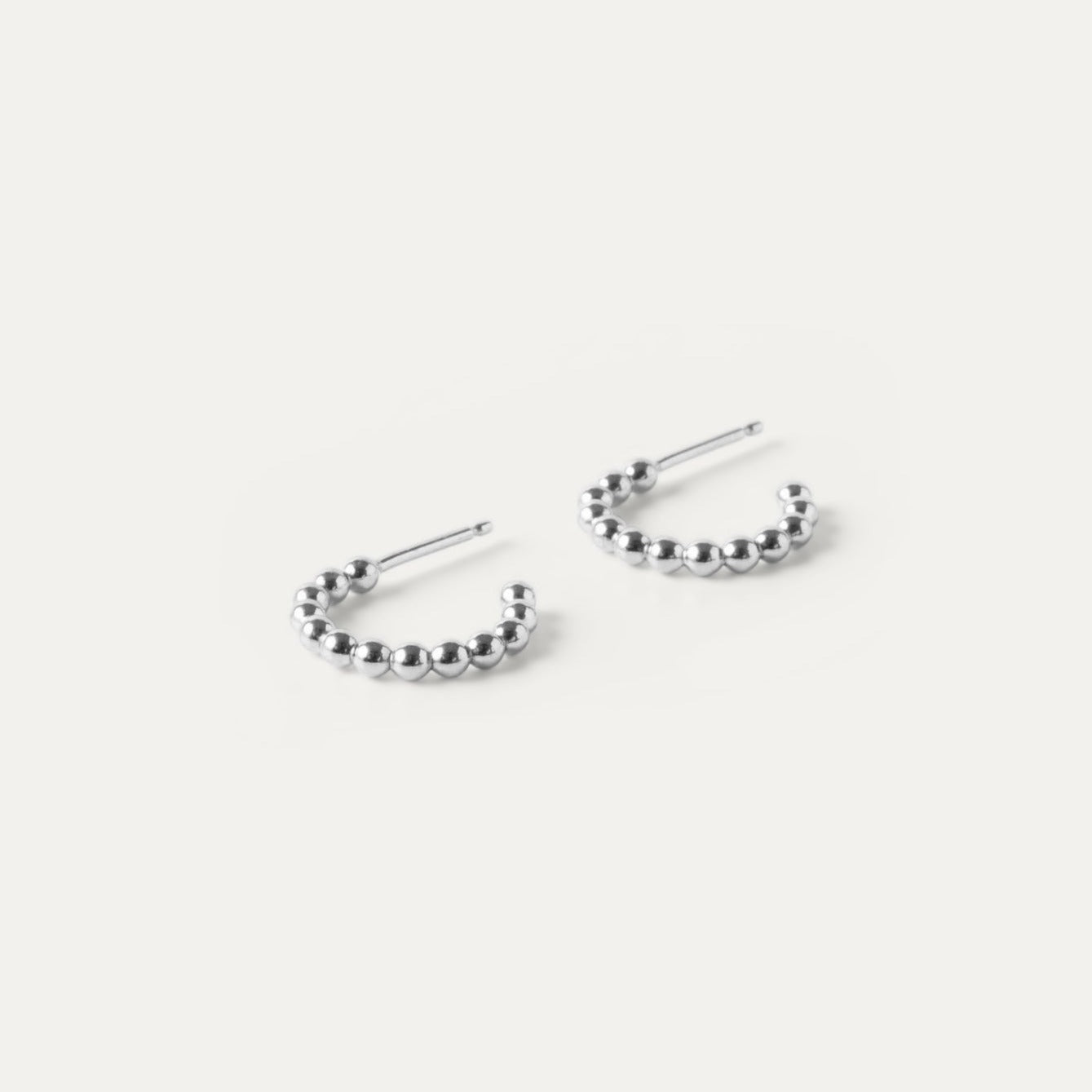 Our Dot Hoops in sterling silver are a sleek and timeless addition to your jewelry collection. These lightweight 12mm hoops feature delicate dot detailing, adding a subtle texture that makes them perfect for everyday wear. Their versatile design allows you to pair them effortlessly with your other favorite pieces, like the Ophelia Ring or Sphere Necklace, for a cohesive and polished look.