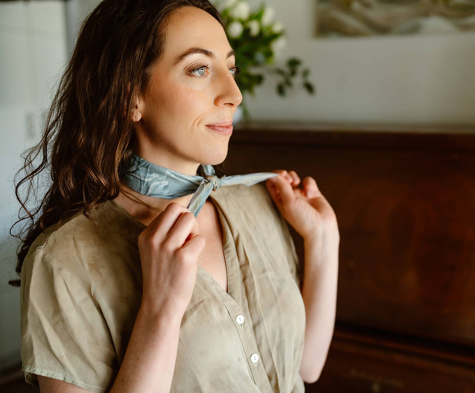 - Fabric: 100% silk twill (14mm) with hand-rolled hem